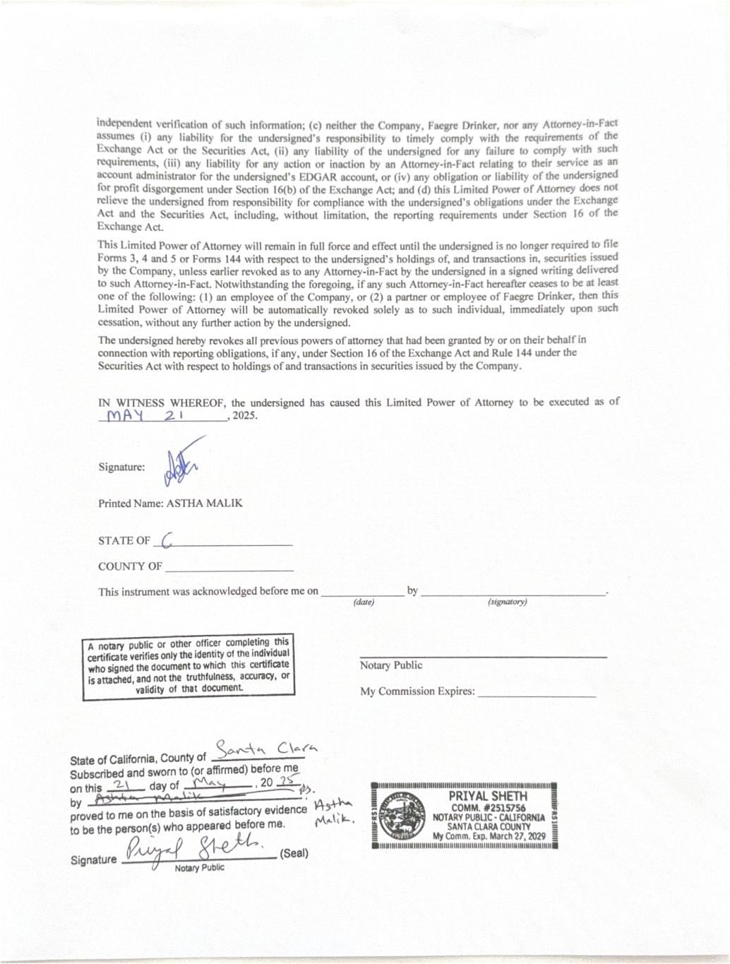 | /s/ Brandon E. Ziegler as attorney-in-fact for Astha Malik | 06/02/2025 | |